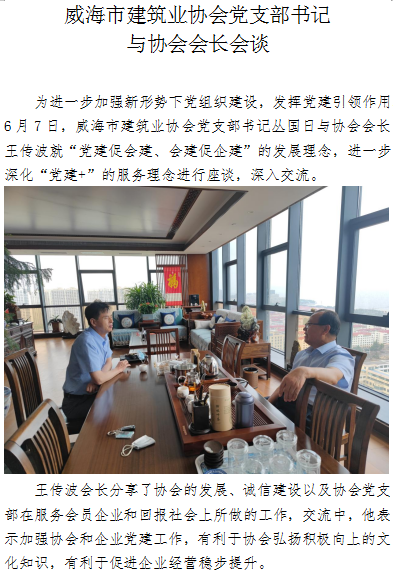 威海市建筑業(yè)協(xié)會(huì)黨支部書記與協(xié)會(huì)會(huì)長(zhǎng)會(huì)談